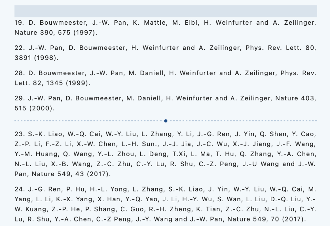 和迪布韦克与西南财大的关系类似,今年诺贝尔物理学奖的获得者之一的安东·塞林格,与中科大的关系也非常密切,甚至在塞林格获奖的文章中,还索引了中科大相关团队的成果与贡献。