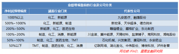 从业绩增幅上看,增长率top10公司中并没有形成明显的行业差别,其中化工占三席,消费、新能源各占两席,医药生物、军工、其他各占一席。增速在0%-50%的公司有80家,50%~100%之间的公司72家,100~200%的公司有66家,200%~500%的公司28家,500%~1000%有12家,1000%以上有9家。而三季报业绩预增王九安医疗则是唯一破万的公司,达到了恐怖的321倍,相比之下预增十几倍到百倍的其余几家公司则“被迫”屈居后列。除此之外,26家公司增速为负。
