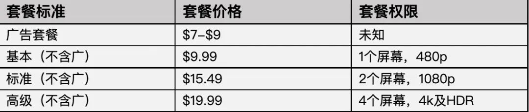 到了今年,一向保守的Netflix开始给自己动刀。4月,含广告的会员收费标准正式官宣;紧接着,Netflix选择与微软联合,于今年底在6个国家试行含广告的会员收费标准。据Netflix预测,届时,在全球范围内将新增4000万人次的广告用户。