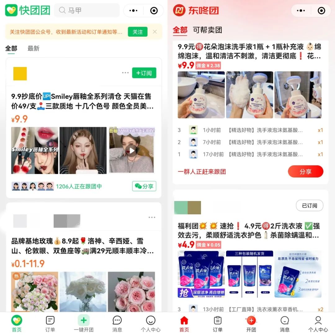 一些团长在采访中都提到了东咚团和快团团一样的“工具属性“,但从多个方面的比较看来,两者并不相同: