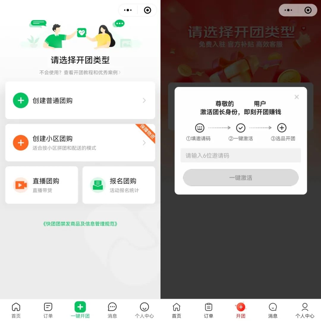 有团长告诉「电商在线」,东咚团平台内的团长还不多,与快团团“0门槛发起团购”不同的是,目前只有获得定向邀请或者邀请码的团长才能发起团购。一些服务商表示可以提供邀请码开通团长权限,但需要通过审核,“最好是有做快团团、群接龙这些团购经验的,或者有自己流量的。”