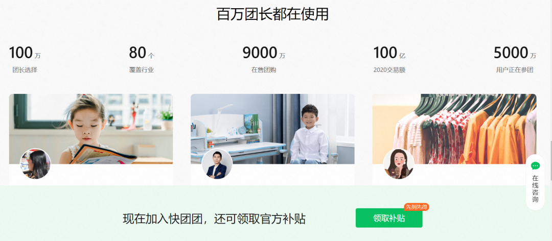 快团团官网公布的2020年信息