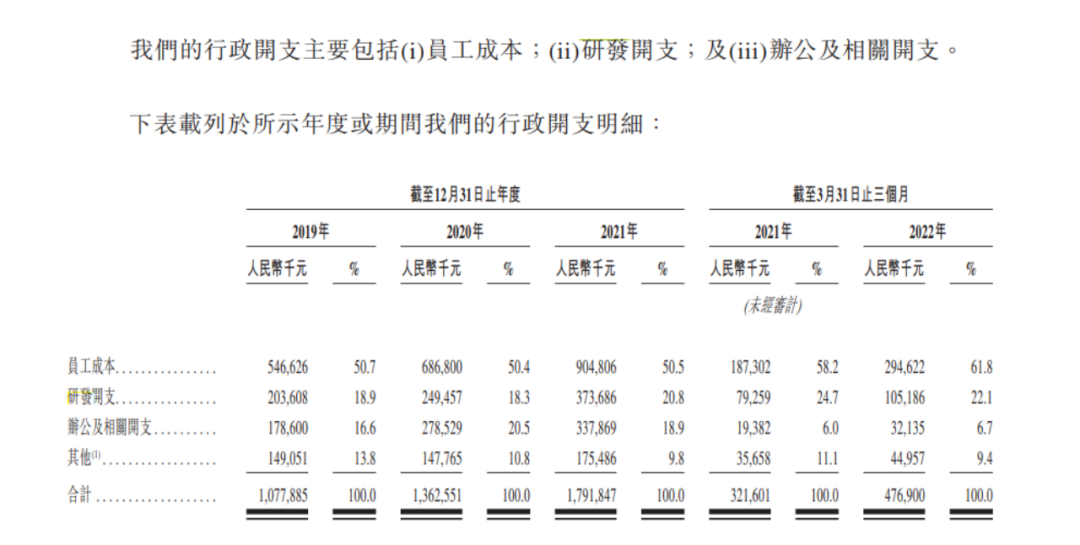 从研发投入角度看,2019年到2021年,万物云研发投入分别为2.04亿元、2.50亿元、3.74亿元,营业收入总额比重分别为1.46%、1.37%、1.58%,均未超过2%,与普遍印象中研发投入占比重动辄15%甚至超过20%的科技公司截然不同。