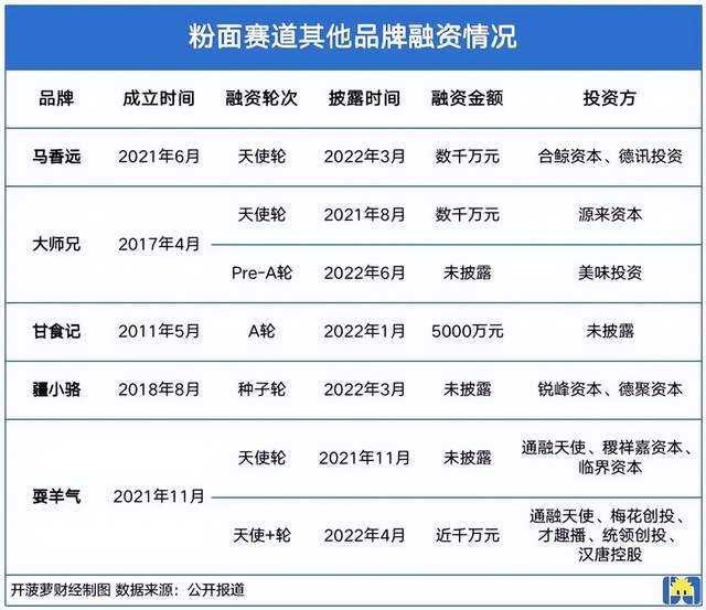 “今年粉面赛道的投融资并没有完全冷却,地方特色品牌还是相对火热的。”李蔡告诉开菠萝财经。