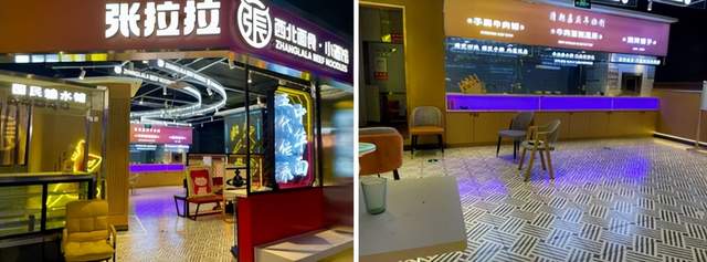 这两家面馆均位于大型购物中心的“美食城”里。探店时正值工作日中午12时左右,开菠萝财经注意到,同一商城、同一楼层的其它快餐店吸引了众多顾客。