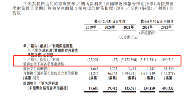 2019年、2020年、2021年,公司净亏损人民币2320万元、人民币7.7万元、54.72亿元。而造成巨额净亏损的原因在于,公司在2019年、2020年、2021年公司分别录得可转换可赎回优先股的公允价值变动亏损4120万元、3620万元和人民币55.94亿元。