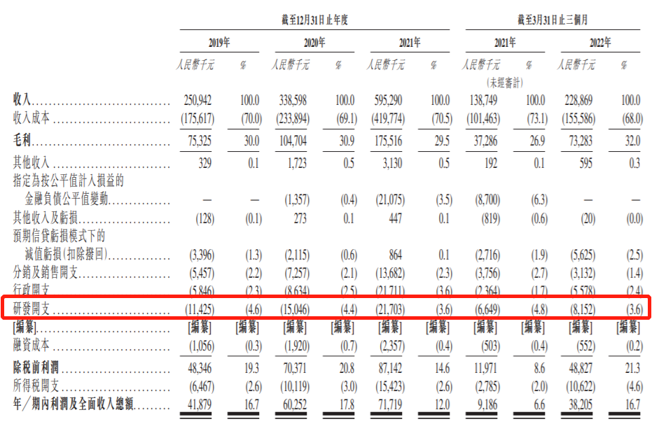 2019-2021年,飞天云动的研发费用分别为1142.5万元、1504.6万元、2170.3万元,2022年Q1研发费用为815.2万元,其研发开支比也从4.6%下滑到了3.6%。