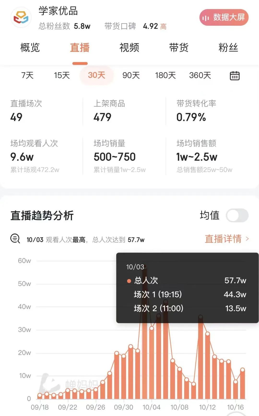 学家优品直播数据,图/蝉妈妈
