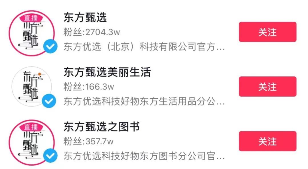 东方甄选相关账号,图/抖音App截图
