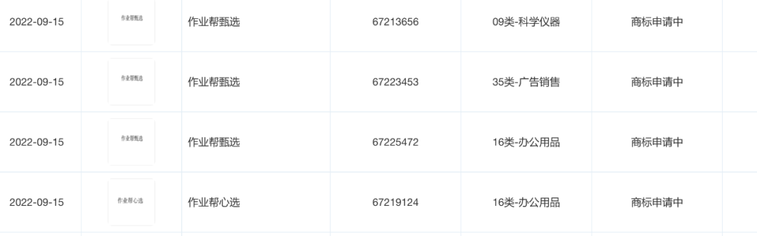作业帮申请的相关商标,图/天眼查