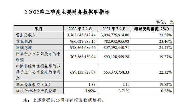 乍一看,这份业绩还算不错:前三季度营收同比增长26.35%,营业利润同比增长36.43%;单三季度营收同比增长21.58%,营业利润同比增长23.46%,净利润同比增长19.27%。
