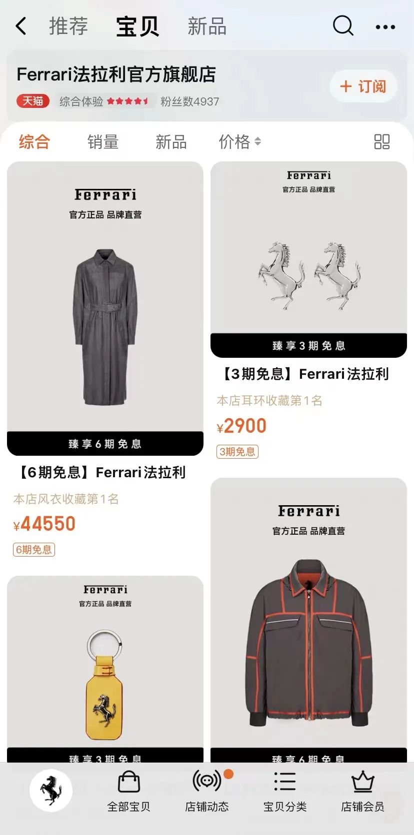 近日,“法拉利在中国卖风衣售价4.45万元”的话题登上热搜。在法拉利开设的中国第一家天猫官方服装旗舰店里,销售有男女高级时装和配饰、箱包四大类产品,价格从几百元到数万元不等。目前店铺内最贵的一套衣服就是登上热搜的一件灰色女士风衣,标价4.45万元,将于10月24日开启预售。