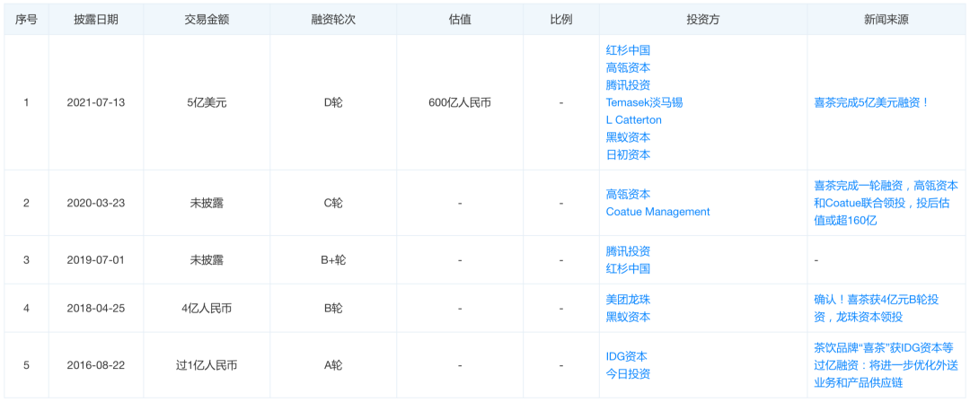 喜茶融资历程
