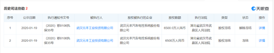 另外,天眼查显示,2020年1月,元丰投资持有元丰电控6500万元,被湖北省武汉市武昌区人民法院冻结。