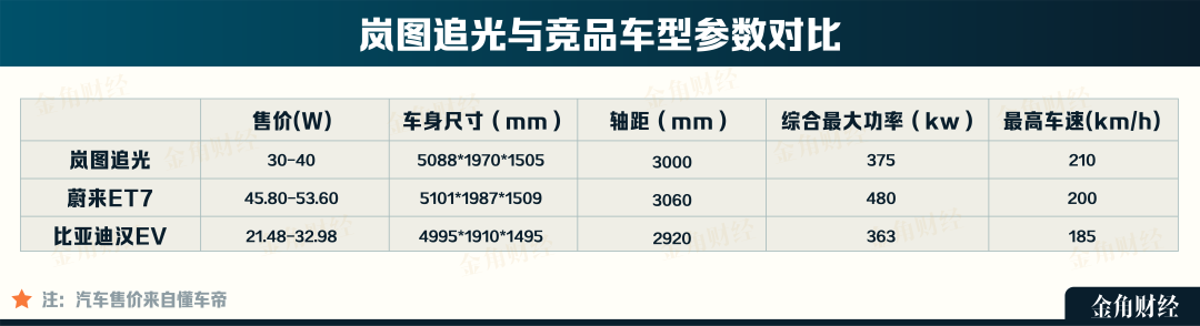 在这个细分领域上,竞争对手有蔚来ET7,比亚迪的汉EV、智己L7等。虽然对手并不弱,但要比岚图FREE定位的中高端SUV市场轻松一点。