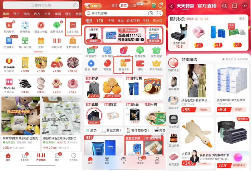 9块9包邮俨然已不再是新鲜的线上玩法,不少电商平台都凭借9块9包邮或者类似的特价专区俘获到了第一批消费用户。