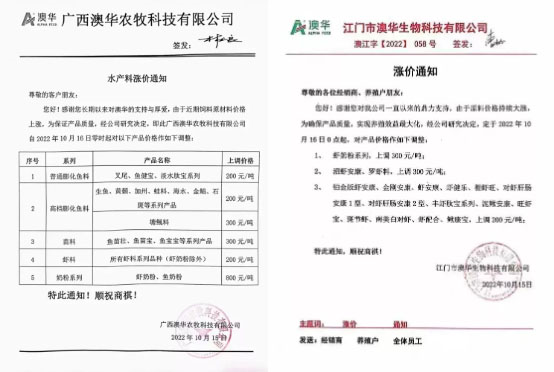 在10月15日,华南地区一大波料企如海大、粤海、澳华等,多个品质上调价格,涨幅在100-400元/吨,涉及到了加州鲈、生鱼、蛙料、对虾等几十个品类。