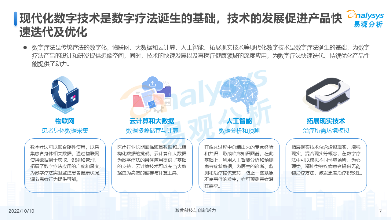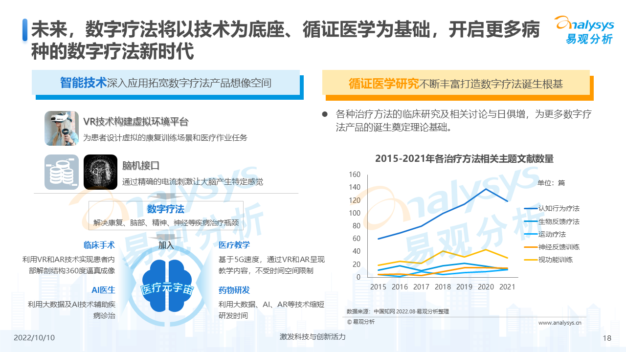未来,随着病种研究和技术应用更加深入,数字疗法将会应用于更多病种,迸发出更大的发展潜力。