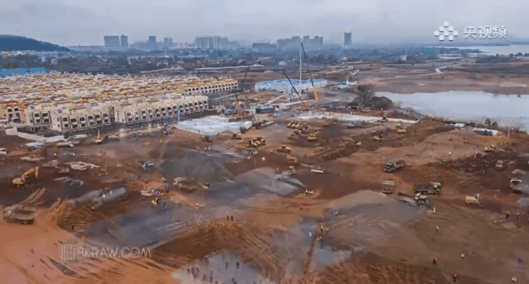 中国中铁用23个小时完成了医学技术楼主体钢桁架的现场拼装;中国铁建拿下了ICU病房施工任务;国药集团解决了医院的安全和环保技术;中国宝武送来了通风管道所需的热镀锌钢板、中国五矿送来了12mm螺纹钢、三峡集团运来了4500平米土工膜……