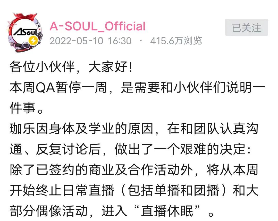 A-SOUL成员珈乐休眠
