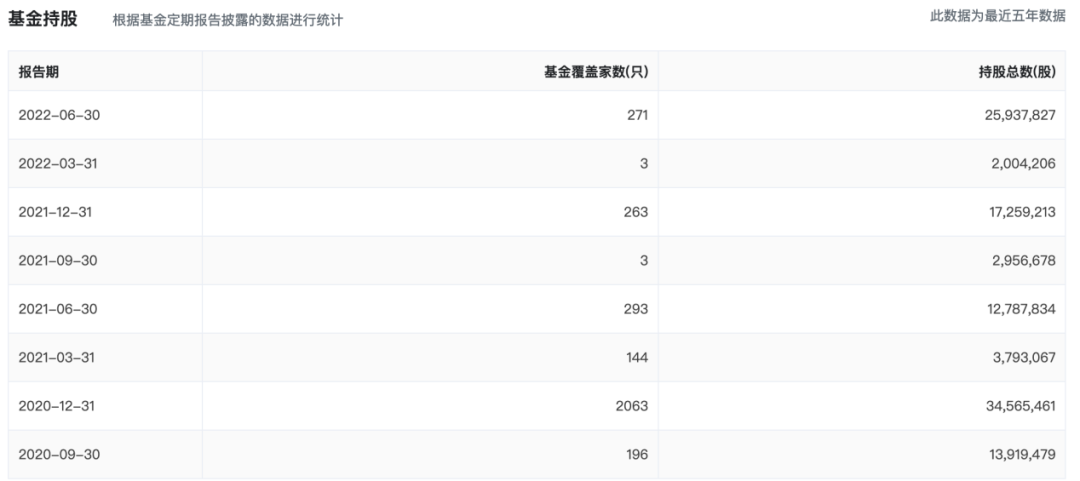 巨潮资讯网数据显示,2020年年底,2063只基金持有金龙鱼3456.55万股,到2022年6月30日,持有金龙鱼股票的基金仅剩271只,持股总数为2593.78万股。