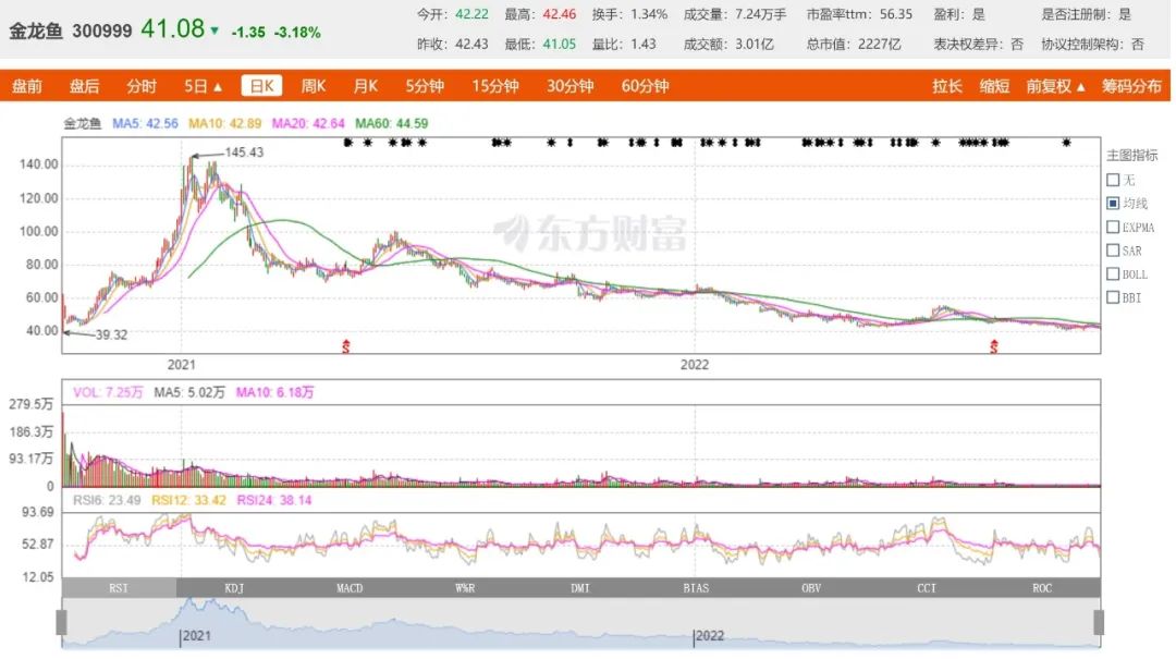 “当时金龙鱼股价暴涨,存在特殊性,一方面,当时以贵州茅台为首的消费股受到资本热捧,金龙鱼作为行业龙头,股价大涨是理所当然的;另一方面,金龙鱼流通盘比较小,资金抱团炒作比较容易,这也会带来股价的暴涨。”杭州某券商人士对「子弹财观」直言。