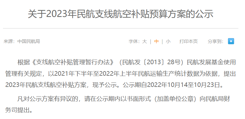 日前,民航局发布了《关于2023年民航支线航空补贴预算方案的公示》(以下简称《公示》),该《公示》根据《支线航空补贴管理暂行办法》民航发展基金使用管理有关规定,以2021年下半年至2022年上半年民航运输生产统计数据为依据,提出2023年民航支线航空补贴方案。其中,2023年民航支线航空补贴预算方案共涉及49家航空公司,补贴金额累计超18亿元,有8家航空公司获得补贴金额超1亿元。