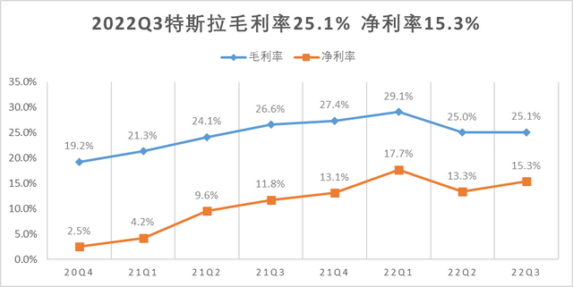 受到原材料价格上涨的影响,特斯拉营业成本同比增长59.2%,高于55.9%的营收增速,导致毛利率较2021年3季度下降1.5个百分点至25.1%。