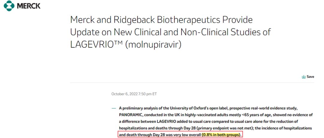 根据默沙东药业当地时间10月6日发布报告可知,莫努匹拉韦用或者不用,意义都不大。