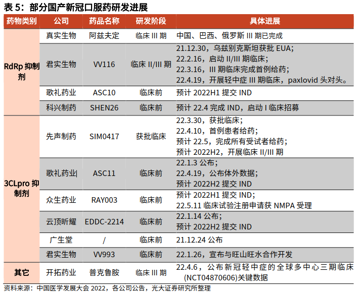 研发速度较快的是已经完成III期临床试验的真实生物的阿兹夫定,开拓药业的普克鲁胺完成了部分III期临床试验,君实生物的VV116目前进展到临床III期。