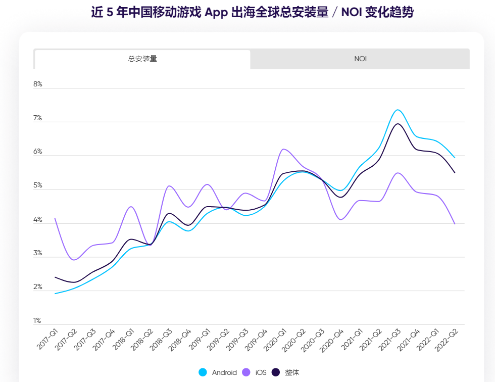 不过总的来说,和用户增长已然见顶的国内市场相比,海外的增长潜力仍值得期待。同样来自AppsFlyer的报告就指出,过去5年中国出海手游APP的总安装量增长了115%。截止今年二季度,出海手游APP的付费用户比例也较去年同期提升34%,前景一片大好。