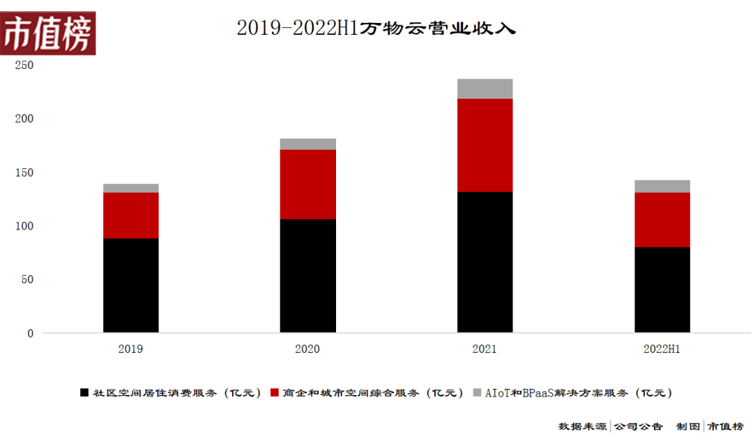 城市服务,用最狭义的概念来理解,是第二大业务里的城市空间整合服务,2021年,这部分收入为3.4亿元,占总收入比重只有1.4%,今年上半年提升到1.8%,仍然微不足道。用相对广义的概念理解,则是第二大业务和部分第三块业务收入。