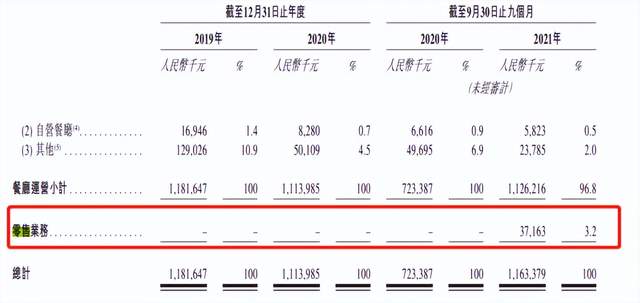 在2021年,杨国福声称为了应对疫情的线下影响,于是做起了零售业务。根据招股书数据,零售业务在2021宗营收中占比3.2%。