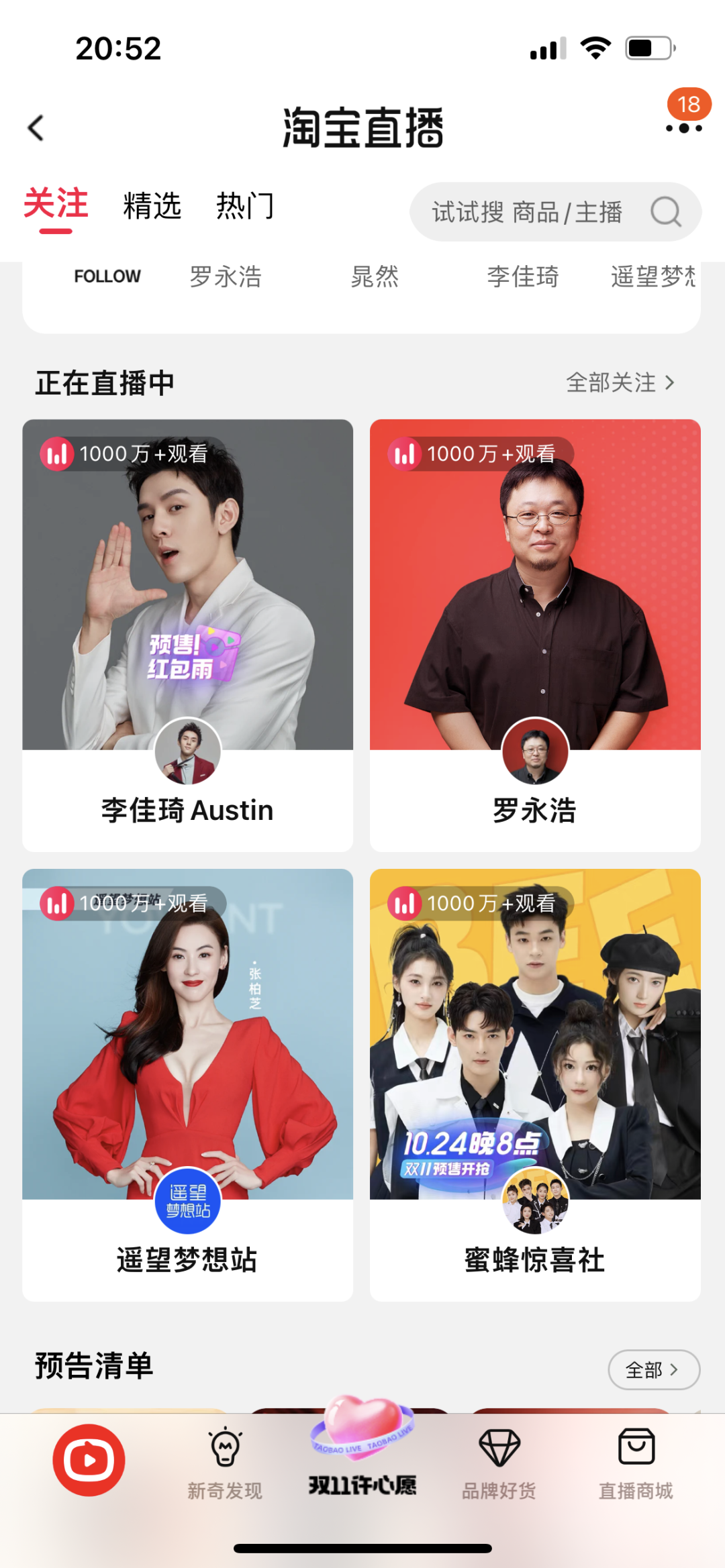 图注:双11预售首日淘宝主播开播截图。