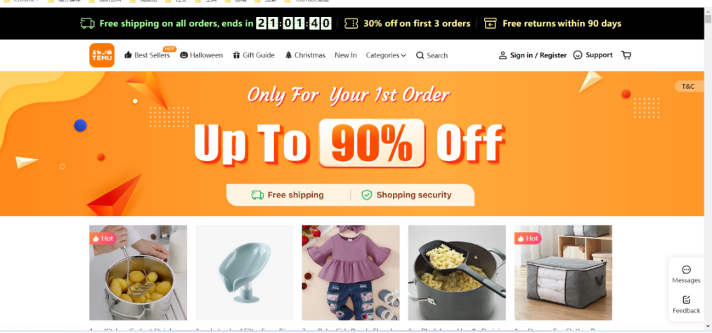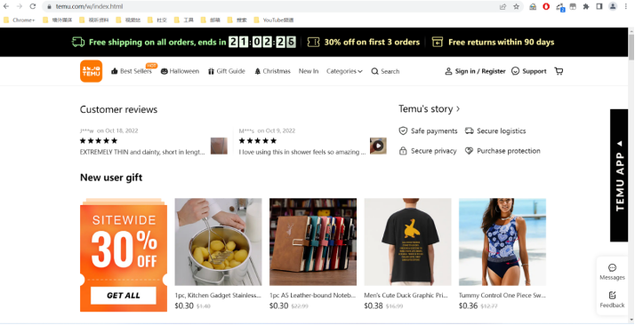 9月1日,拼多多在美国正式上线Temu时,就拿出了“全网订单免运费、无门槛7折优惠、90天免费退货”引流三大利器。