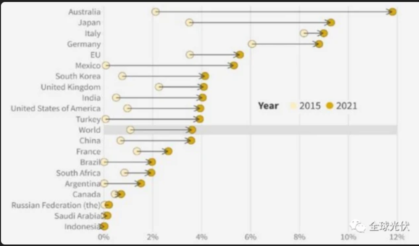 (全球各国光伏发电情况 图源:全球光伏微信公众号)