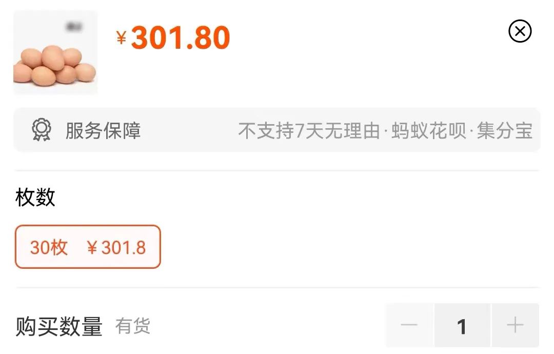 某电商平台显示,销量第一的无菌蛋价格为86.8元/30枚,单枚价格为2.89元。