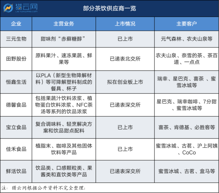 以德馨食品为例,其合作伙伴福建绿泉食品,直接跳脱德馨食品成为了蜜雪冰城、古茗、茶百道的供应商。