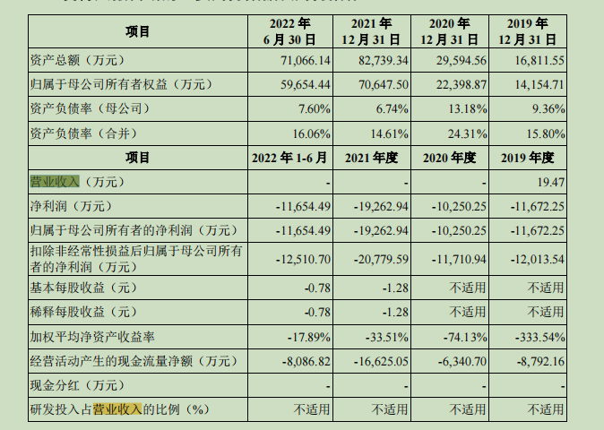 也就是说,此次闯关科创板的恒润达生,尚无产品上市销售,因此2020年、2021年以及2022年1-6月无收入。而2019年其他收入为19.47万元,来自于公司向苏州克睿基因生物科技有限公司提供了一批次实验用逆转录病毒收入。