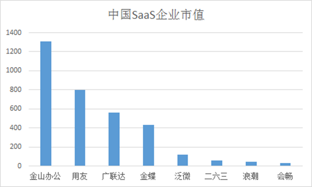 中国SaaS到现在没有找到自己的方向,这一点可以从SaaS上市公司的市值看出端倪: