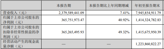 10月27日晚间,中药创新药龙头以岭药业(002603.SZ)发布三季报,第三季度公司实现营业总收入23.80亿元,同比增长7.41%;实现归母净利润3.66亿元,同比增长40.92%;实现扣非归母净利润3.66亿元,同比增长49.32%,持续高增。