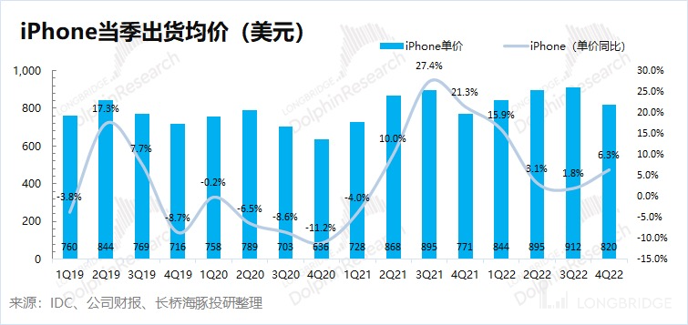 海豚君从量和价关系来看,来看本季度 iPhone 业务的主要增长来源: