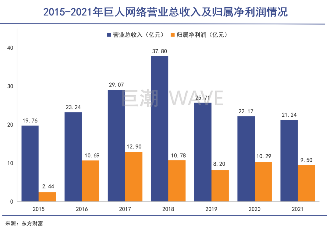 这个数字,约占2007年—2018年,巨人网络上市以来的营业收入的80%左右。这是一个巨大的依赖。这种情况至今未见较大改观。