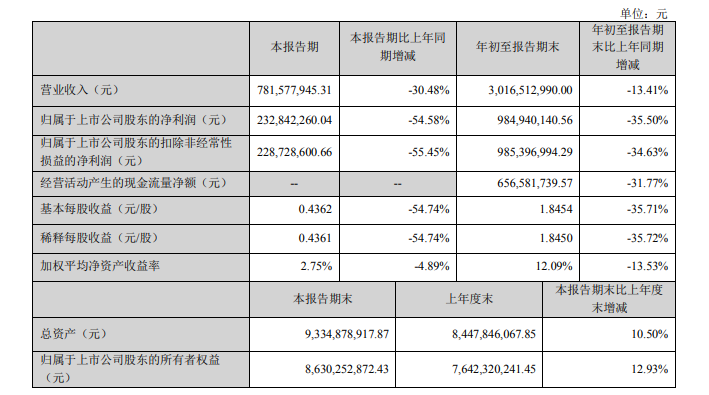 三季报营收、净利双降