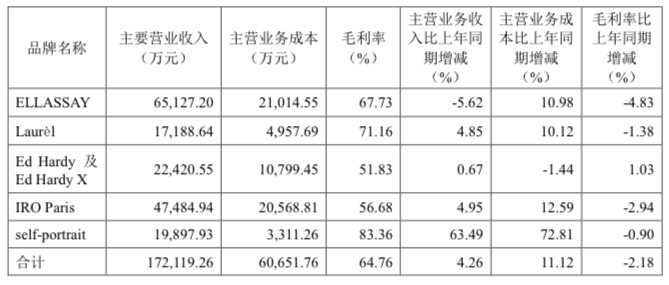 上述报告期各期,ELLASSAY毛利率分别是71.88%、72.19%、67.73%,可见主品牌的毛利率2021年微涨后又大幅下滑,整体赚钱效应下滑。