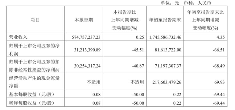 前三季度净利润降逾六成