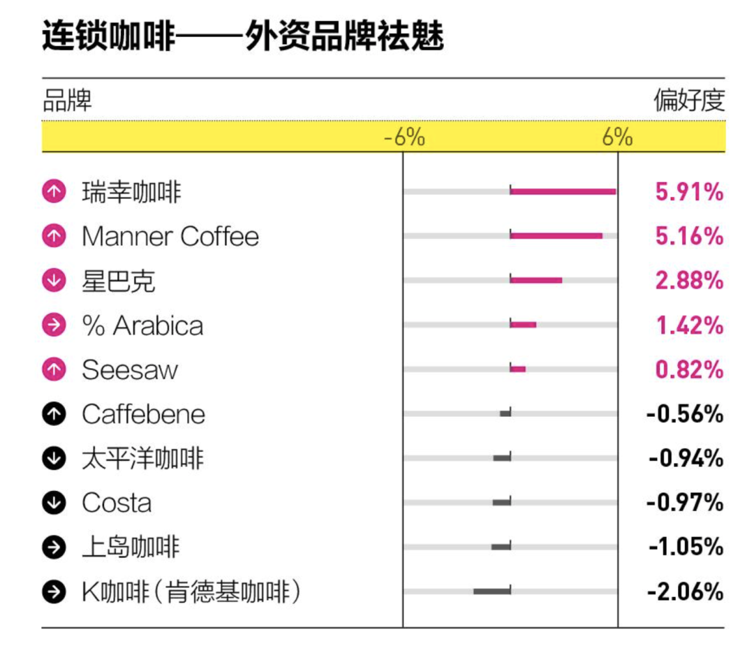 “金字招牌”公司人品牌偏好度调查连锁咖啡类目 | 图源第一财经
