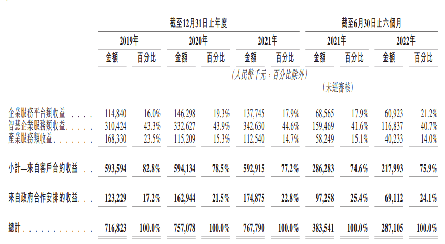 招股书显示,在智慧企业服务中,工商财税服务和知识产权服务是两大支柱业务,占到八成以上。换算之后,二者占到公司营收的四成,是最大的两项业务。通俗来说,就是代理记账和商标代理,服务主体以中小企业为主。