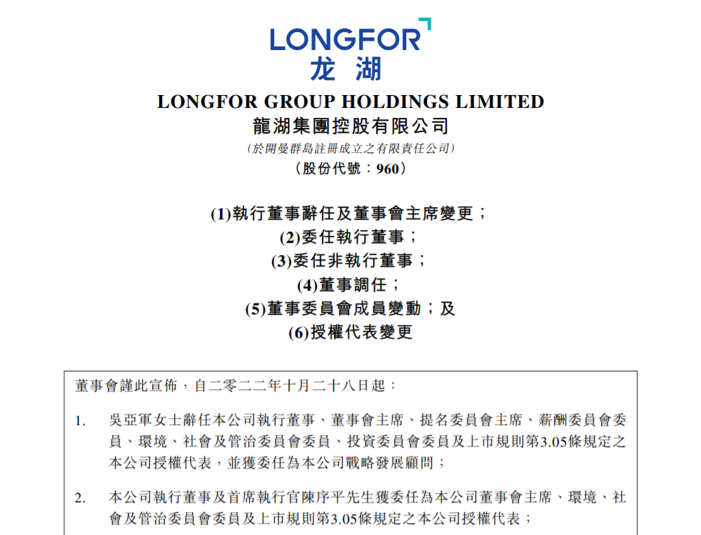 根据近日龙湖集团发布的公告,创始人吴亚军因个人年龄和身体原因卸任集团董事长,但会以战略发展顾问的身份继续关注和支持公司。