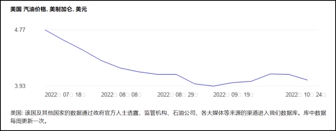 为什么Biden那么想拯救炼油厂,新建炼油厂?还是规律使然——没有一位总统曾在汽油价格超过每加仑4美元的背景下再次当选,毕竟这是一个车轮上的国家,而美国汽油价格高是因为炼油产能紧张。今年6月美国汽油价曾突破每加仑5美元,据GlobalPetrolPrices网站上查到的信息,2022年10月24日美国汽油价格为每加仑4.02美元,仍处于临界点。